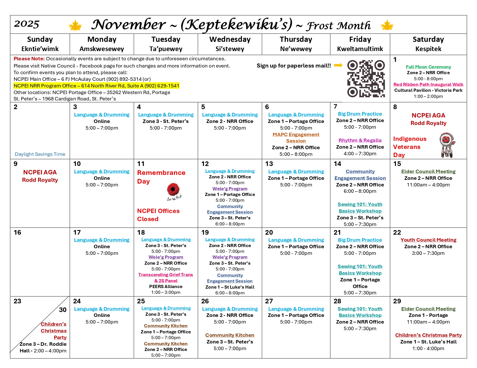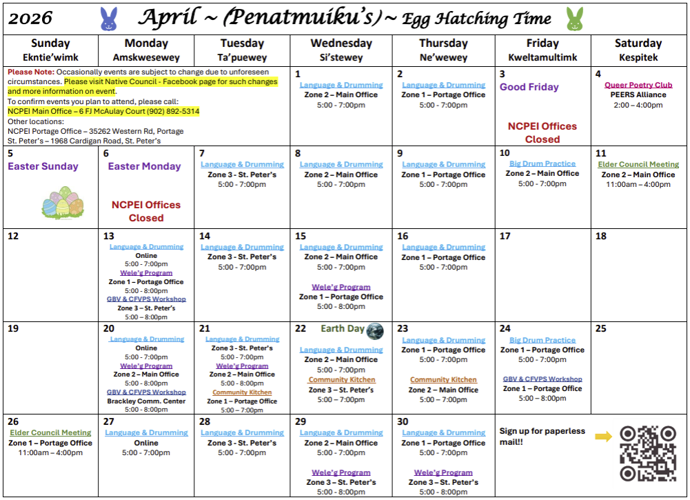 The Native Council of Prince Edward Island is a community of Indigenous people living off-reserve in traditional Mi’kmaq territory. NCPEI is the self-governing authority for all off-reserve Indigenous living on Epekwitk (PEI).