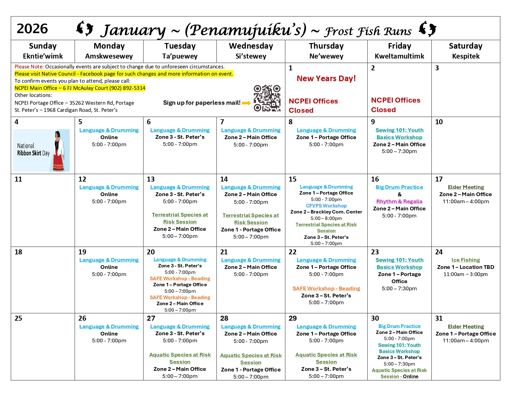 Keptekewiku’s (November) Calendar of Events